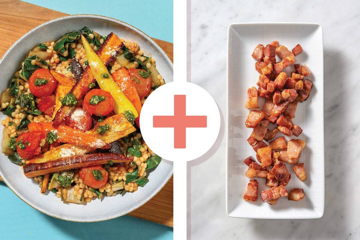Custom Recipe: If you've added diced bacon to your meal, heat a large frying pan over medium-high heat with a drizzle of olive oil. Cook diced bacon, breaking up with a spoon, until golden, 6-7 minutes. Stir the bacon through the couscous along with the spinach, butter and brown sugar.
