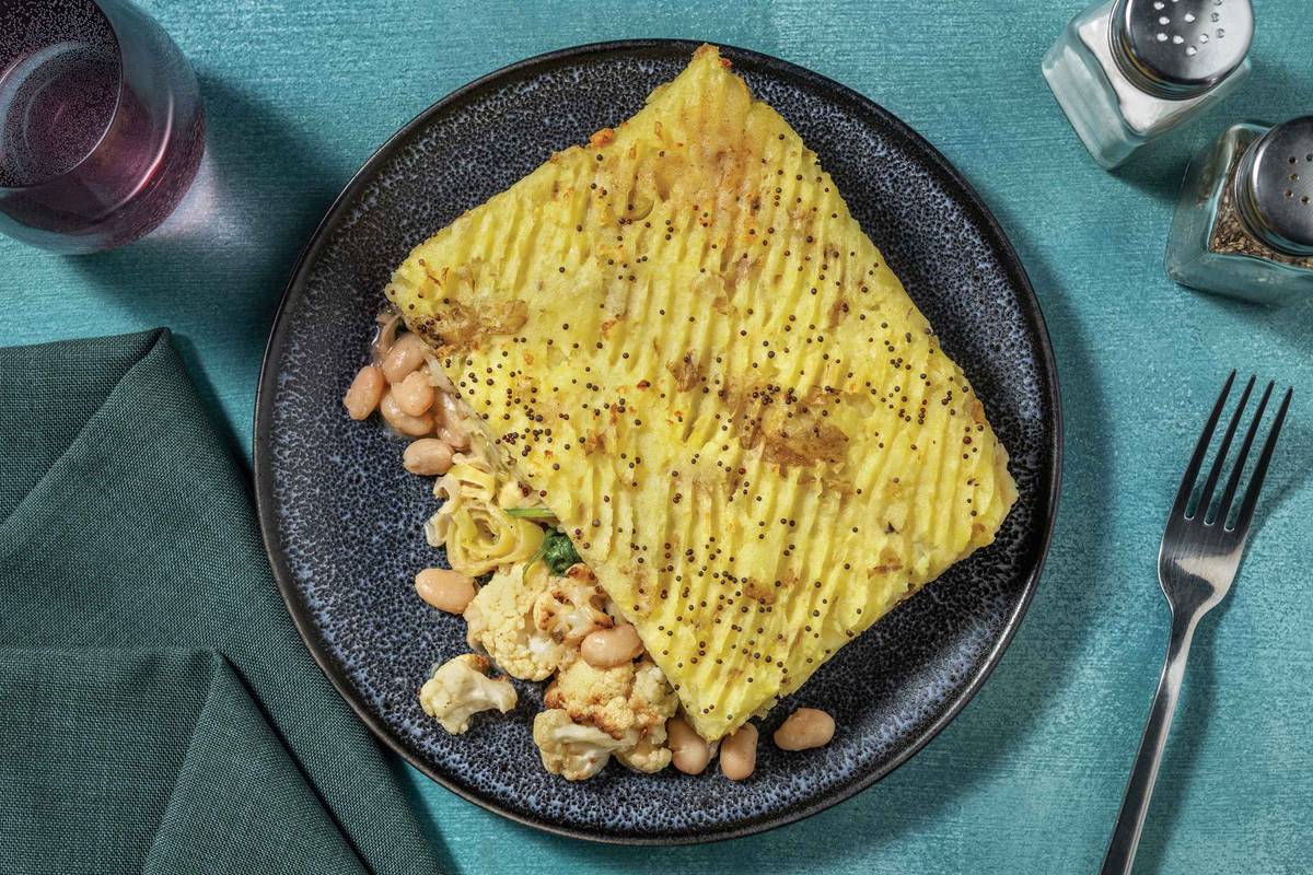 • Divide bacon and potato-topped cannellini bean curry pie between plates. Enjoy!