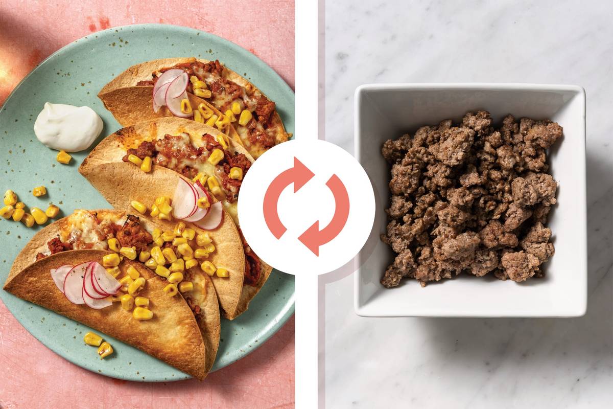 • Return the frying pan to high heat with a drizzle of olive oil. Cook beef mince, carrot and onion, breaking up mince with a spoon, until just browned, 4-6 minutes. • SPICY! This is a mild spice blend, but use less if you're sensitive to heat! Reduce heat to low, then add All-American spice blend and cook until fragrant, 1 minute. • Stir in tomato paste, the butter and water and simmer until slightly thickened, 2-3 minutes. Season to taste.