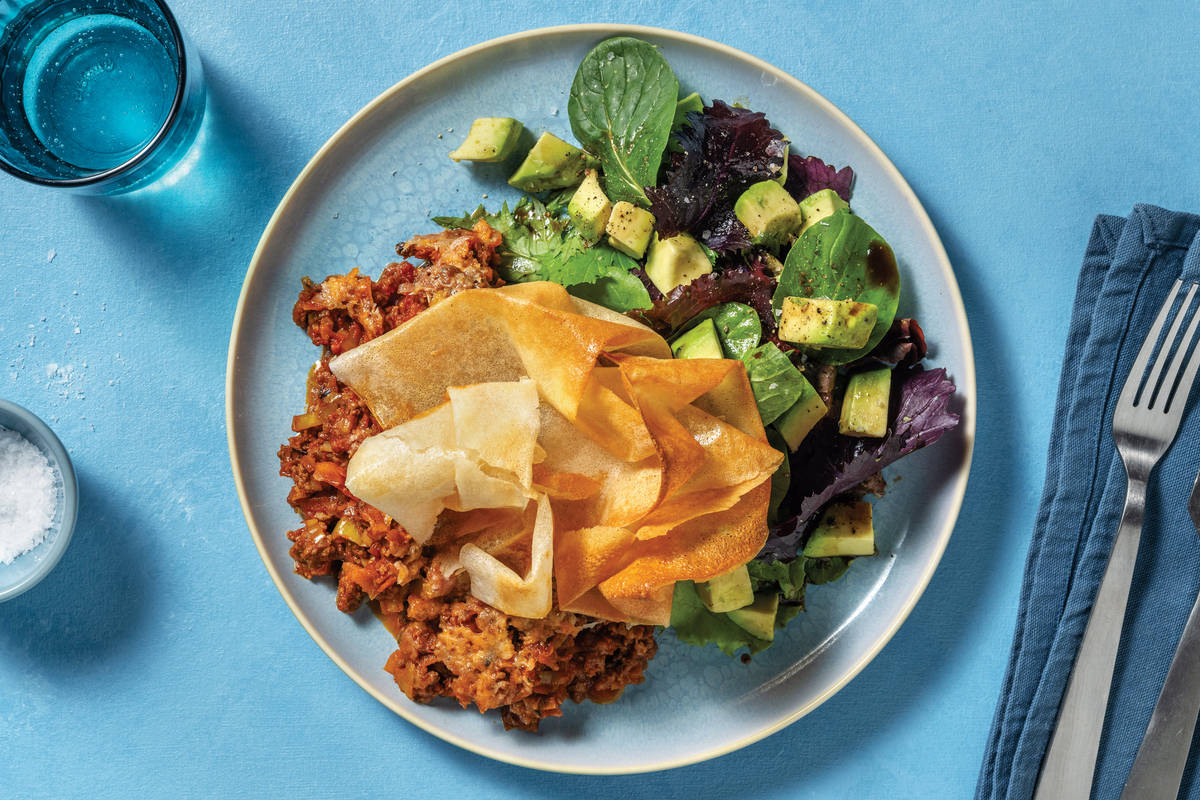 • Divide cheesy beef and filo pastry pie between plates. Serve with avocado and balsamic salad. Enjoy!