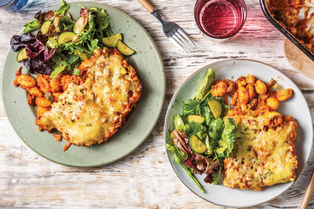 Knock knock. Who's there? Gnocchi! It's been roasted, then baked with a veggie-loaded tomato and beef sauce and cheesy topping, so we're pretty sure you'll want to invite it in for dinner!