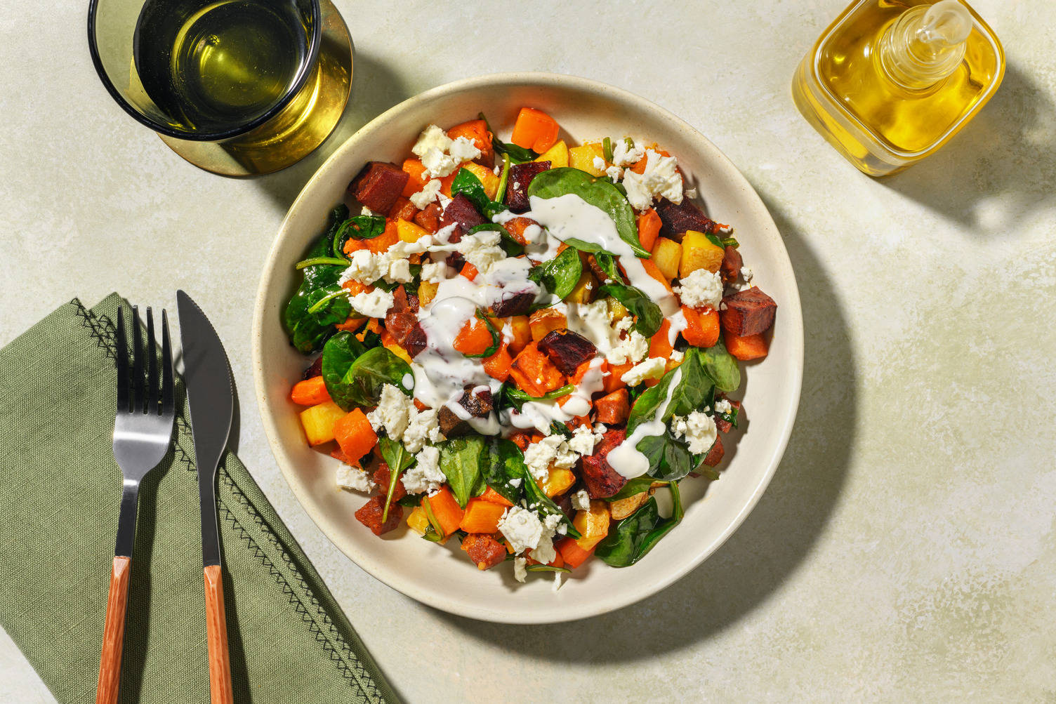 • Place roast veggie mix and beetroot on a lined oven tray. Drizzle with olive