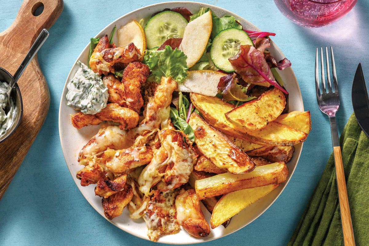 Simple, indulgent flavours are the highlight of this modern dish. With mouth-watering chicken strips coated in our popular Aussie spice blend and gooey Cheddar cheese, plus with roasted wedges giving a filling finish, we think you'll be licking the plate clean. *This recipe is under 650kcal per serving.*