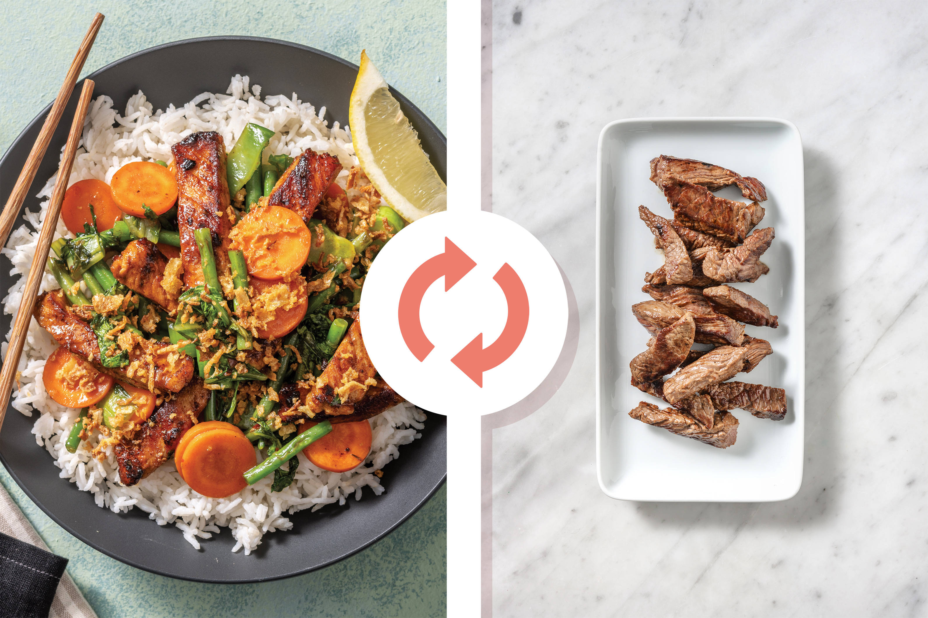 Get delicious recipes and all ingredients fresh on your doorstep every week!