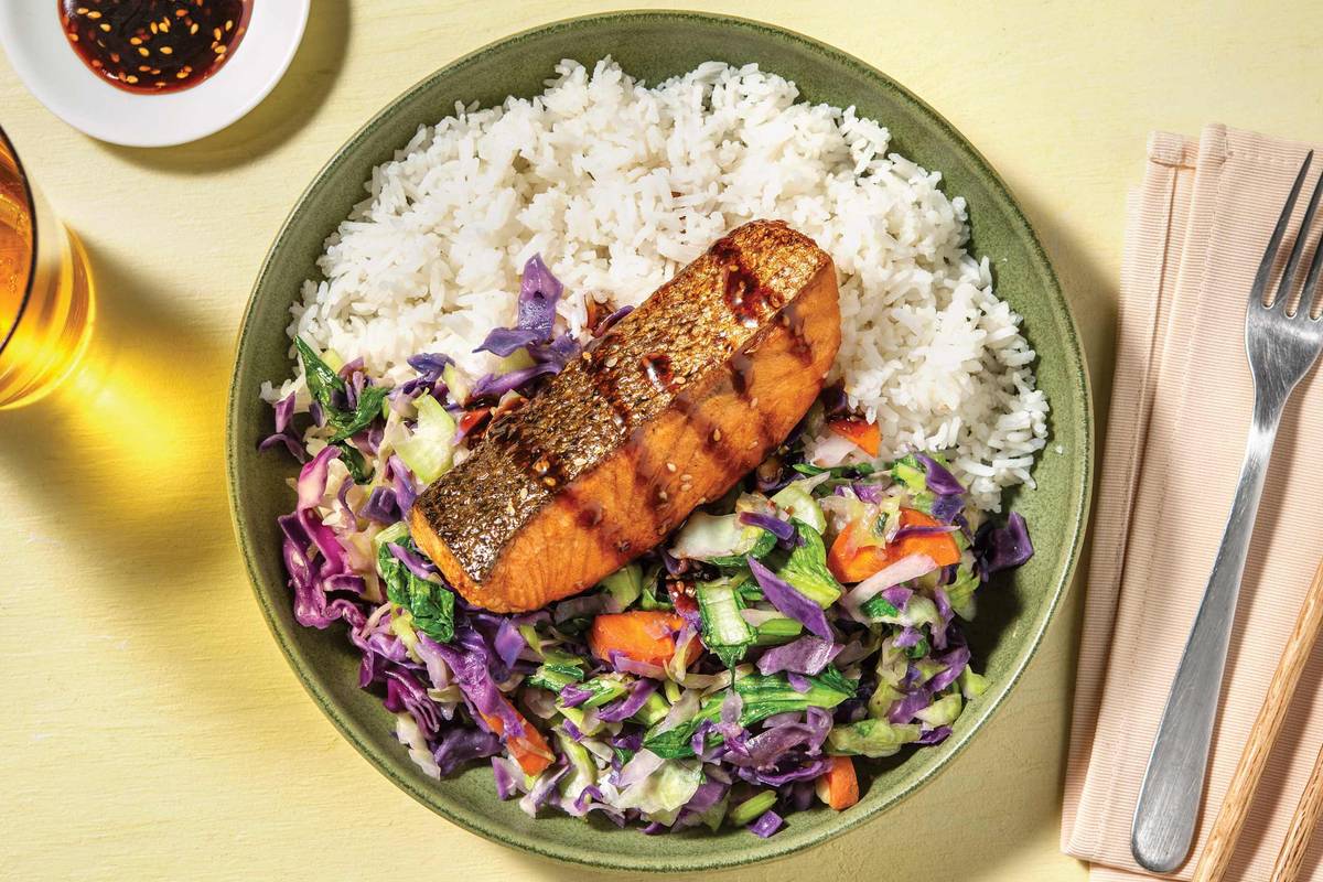 Divide the jasmine rice and ginger veggies between bowls. Top with the honey soy-glazed salmon. Spoon over any remaining glaze from the pan to serve. Enjoy!