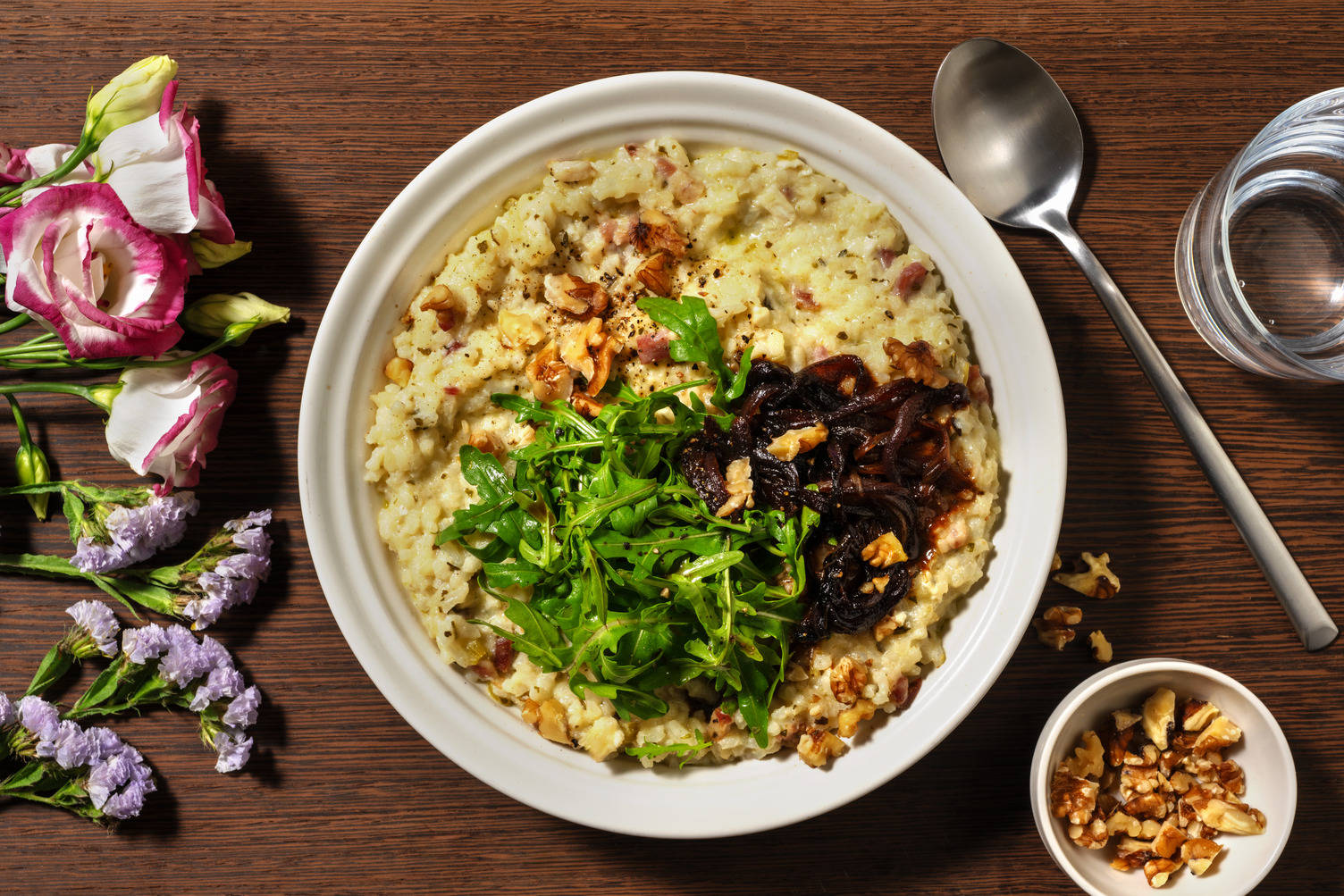 Preheat the oven to 220°C/200°C fan-forced. Cut the potato into bite-sized chunks, then place on a lined oven tray. Drizzle with olive oil and season with salt and pepper. Toss to coat, spread out evenly, then roast until just tender, 10-15 minutes. Meanwhile, finely chop the garlic and brown onion (see ingredients). Grate the carrot.
