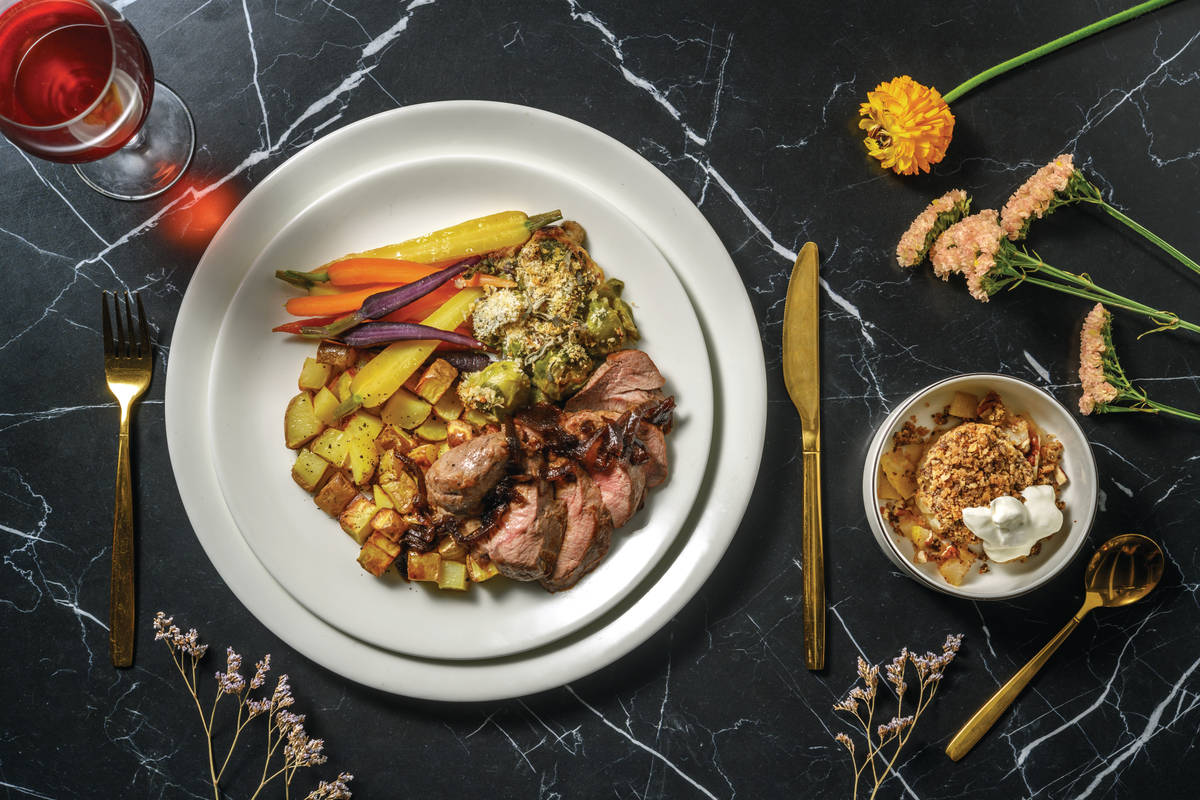 Sear a tender and succulent lamb loin that's just right for a gourmet-style dinner. With all the flavour of nostalgic roast lamb, plus wholesome veggies, it's sure to have you feeling festive with every delicious mouthful of this Christmas in July special. And the best feasts end with a sweet treat, so we've included a serving of chocolate toffee pudding with poached pears for dessert! To download the recipe card for the main and dessert, click the download arrow on the right of the screen. The current labour shortages have impacted availability of ingredients across the entire food supply chain. As such, what you receive may be slightly different to what’s pictured. Don’t worry, your recipe will be just as delicious!