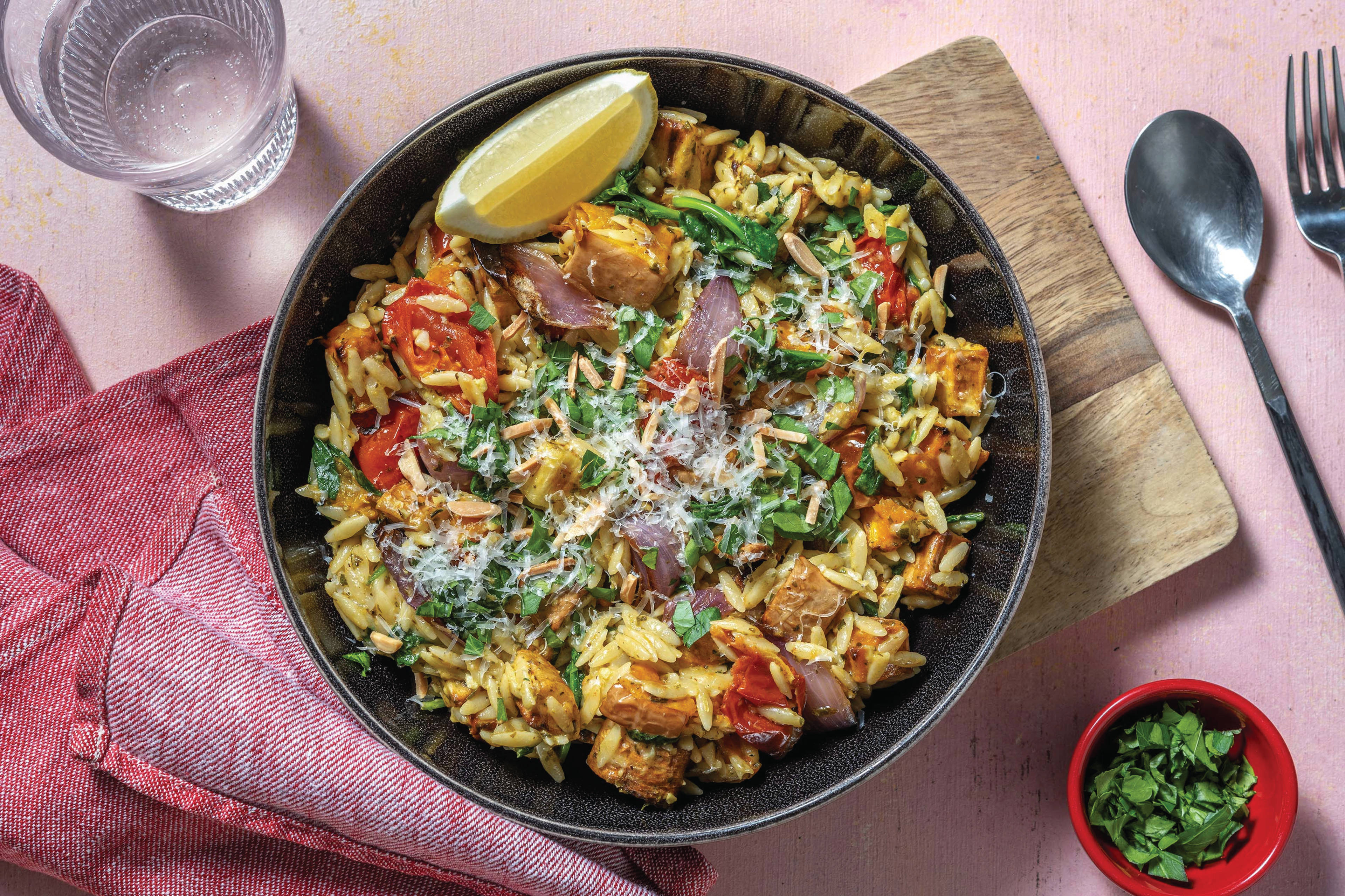 • When the cake has finished baking and is still hot, poke a few holes into the top of cake, then spoon lemon syrup over cake. Set aside to cool completely in tin. • Meanwhile, roughly chop walnuts. Heat a medium frying pan over medium-high heat. Toast walnuts and slivered almonds until golden, 3-4 minutes. Transfer to a bowl.