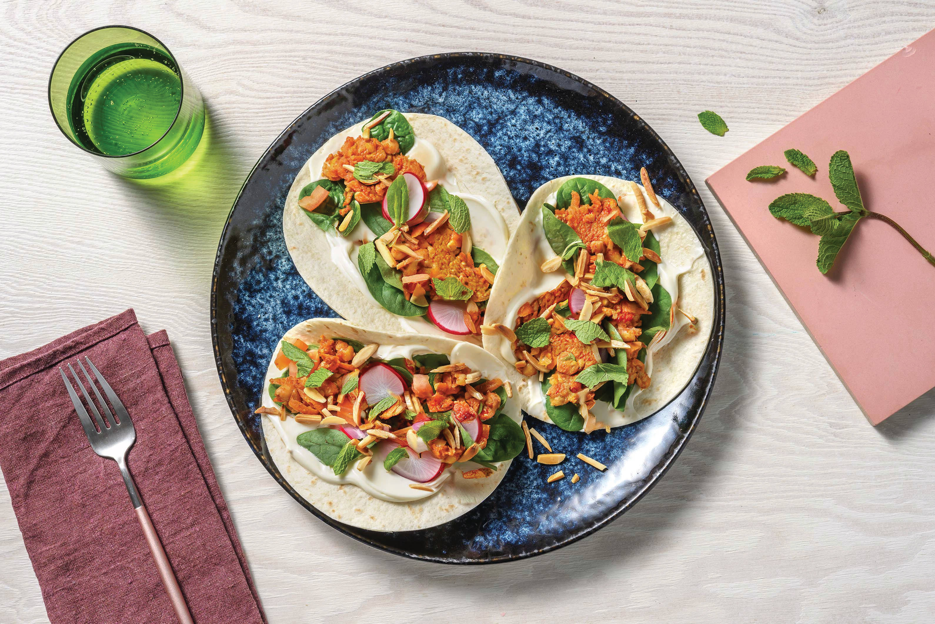 Tacos can be made with any fillings and toppings. Add ground beef, pork, seafood or jackfruit alongside condiments and cheeses.