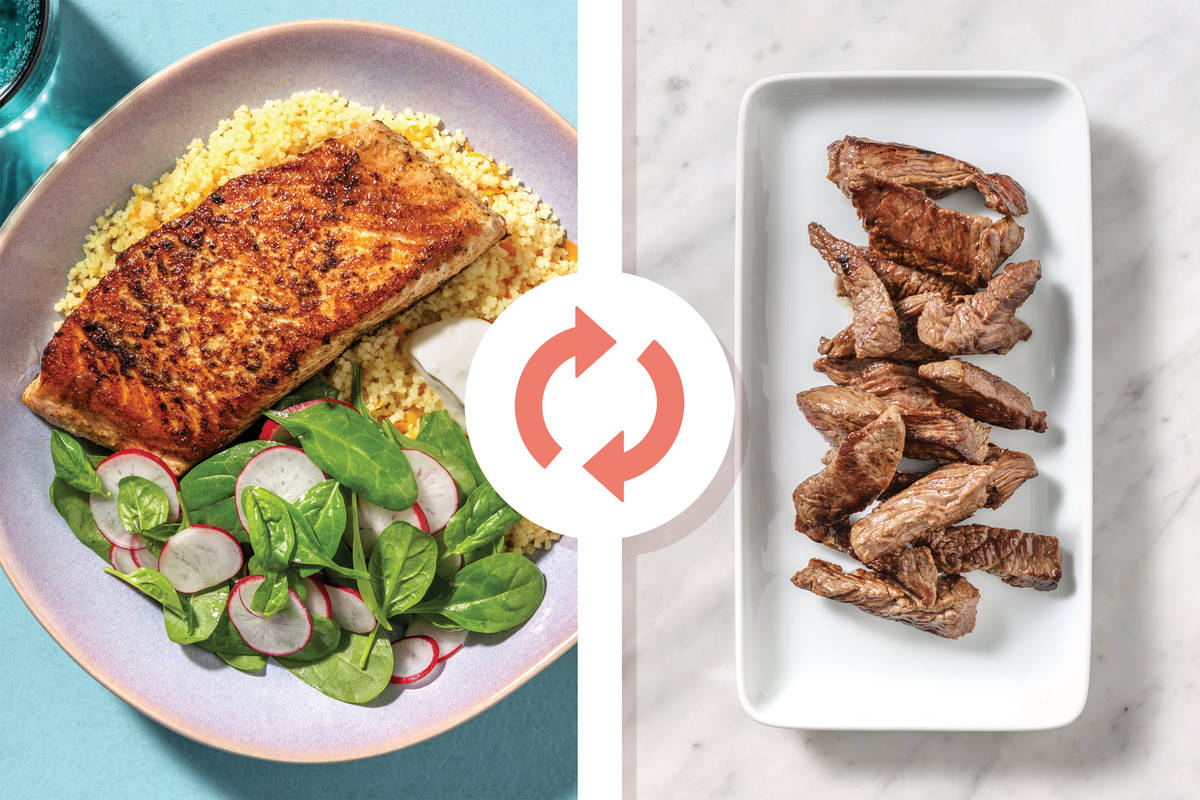 There’s something very hearty about beef strips and we’re adding a touch of sweet by coating it in honey and dolloping over a punchy yet soothing garlic yoghurt. Resting on a bed of fluffy carrot couscous tonight’s dinner is fast and delicious. Dig in! This recipe is under 650kcal per serving. The recent weather conditions across New Zealand have impacted our regular supply of fresh ingredients and as such, what you receive may be slightly different to what’s pictured. Don’t worry, your recipe will be just as delicious!