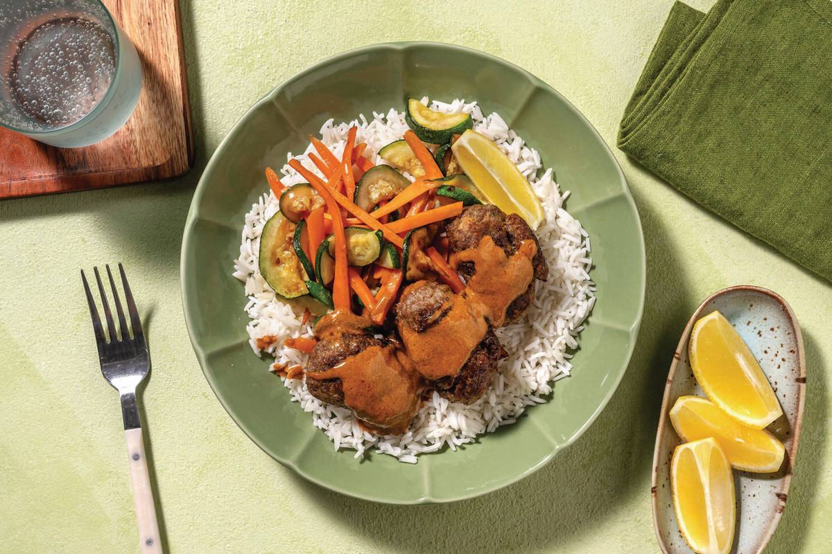 These koftas are handy parcels of explosive flavour, with tender beef and pork mince, mild spices and a punchy coconut sauce to drizzle over the top. Paired with garlic rice and veggies drizzled with lemon juice, this is a Moroccan-style feast to remember.