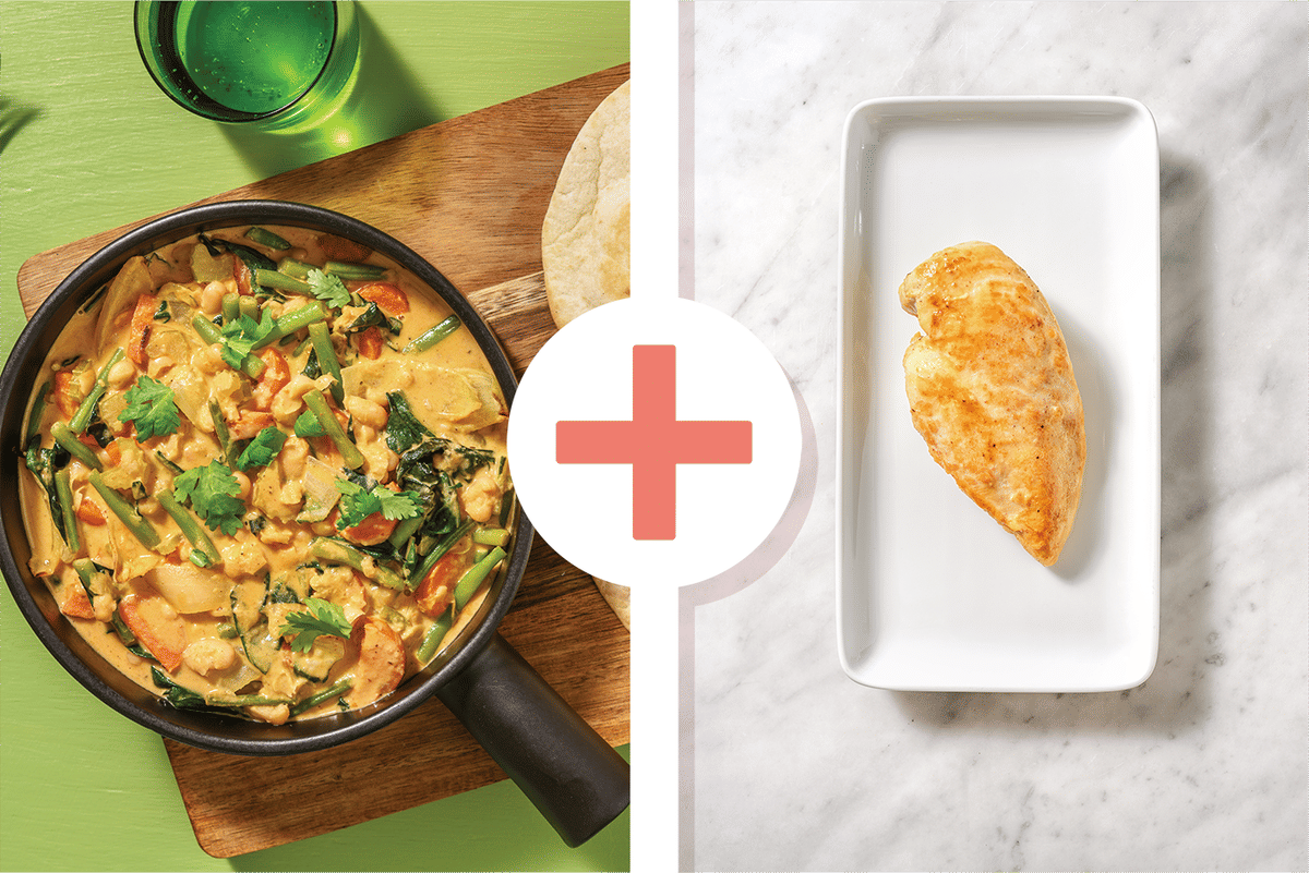 Inspired by 'harira', a traditional North African soup brimming with legumes, veggies and fresh herbs, this is no humble stew! Simmer all the goodness with creamy coconut milk and our chermoula spice blend, and scoop it up with golden, crispy flatbreads, straight from the oven. *The recent wet and cold weather across New Zealand has impacted our regular supply of fresh ingredients and as such, what you receive may be slightly different to what’s pictured. Don’t worry, your recipe will be just as delicious!*