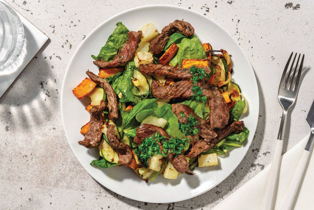 • Spoon plant-based basil pesto over herbed beef to serve. Enjoy!