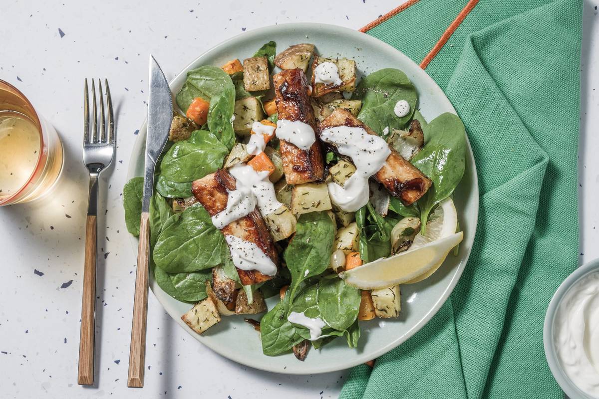with Herby Roasted Veggies & Garlic Yoghurt