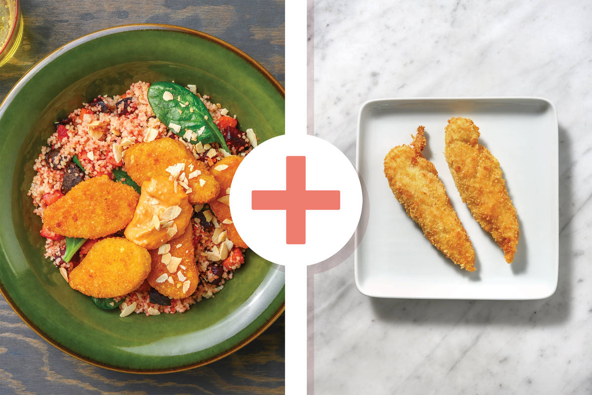 Root veggies like carrot and beetroot can really bring a new layer to couscous. Top it with plant-based chicken that’s crumbed and golden. We’ll let you go and enjoy this delicious meal! *The recent weather conditions across New Zealand have impacted our regular supply of fresh ingredients and as such, what you receive may be slightly different to what’s pictured. Don’t worry, your recipe will be just as delicious!*