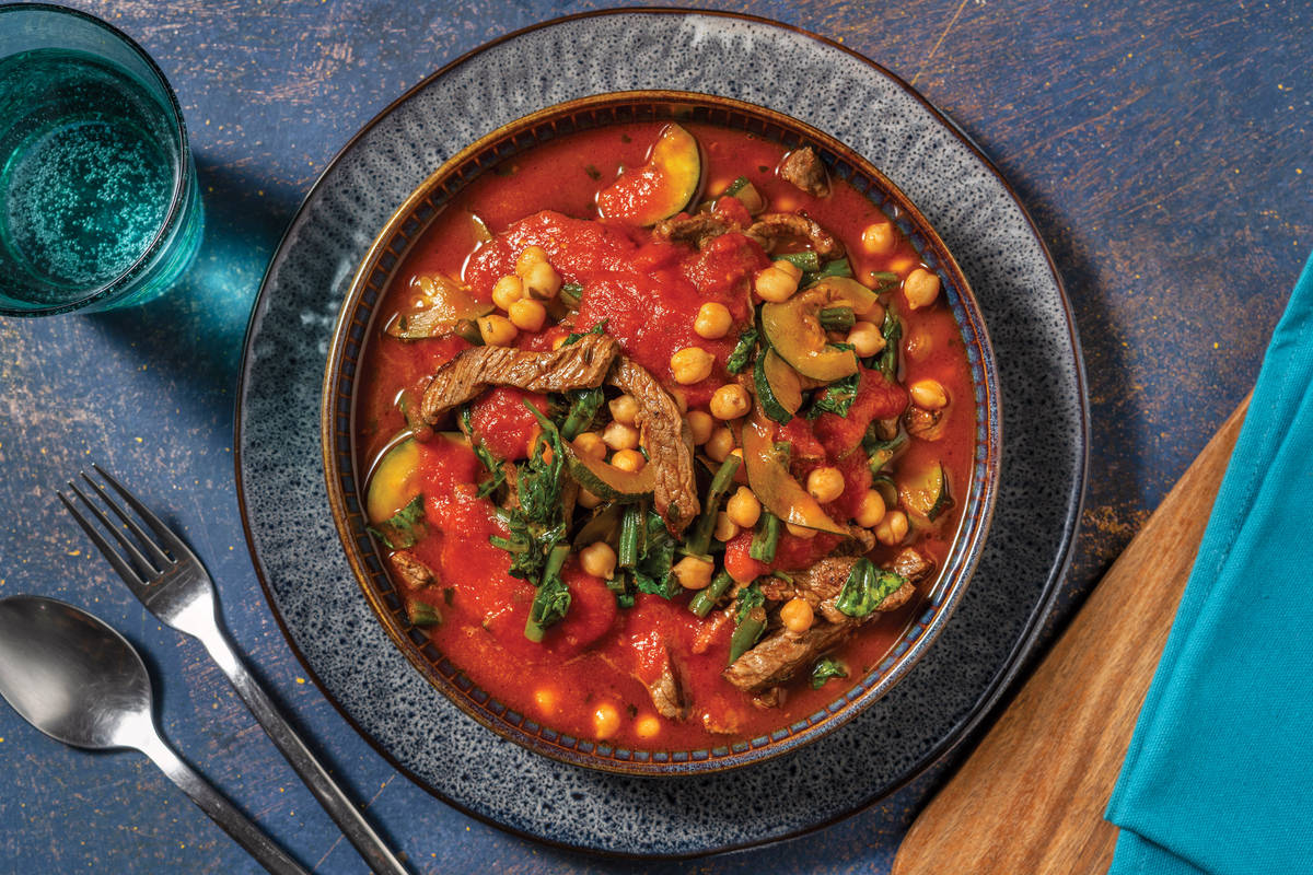 This saucy stew, filled with smokey romesco sauce and burnished oranges (chickpeas and carrots) will have you feeling as warm as it looks. And with this speedy method, you’ll be left with beef that’s as tender as it is satisfying. *This recipe is under 650kcal per serving and under 30g carbohydrates per serving.* *Keep an eye out...Due to recent sourcing challenges, we’ve replaced courgette with carrot, which may be a little different to what’s pictured. Don’t worry, your recipe will be just as delicious!*