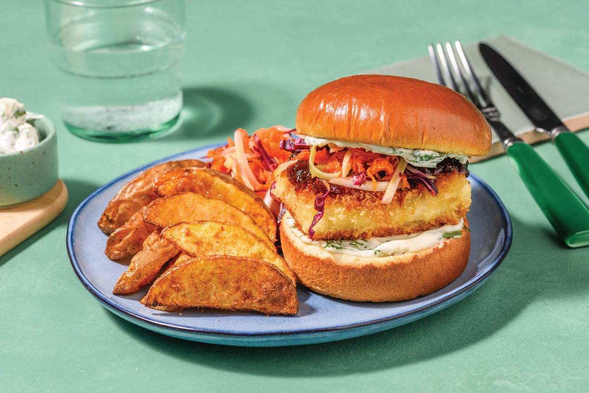 Serve up a hearty burger made with a golden "patty" of sesame-coated haloumi! A smear of dill-parsley mayo and sweet and tangy beetroot relish turns this veggie dinner into a taste sensation.