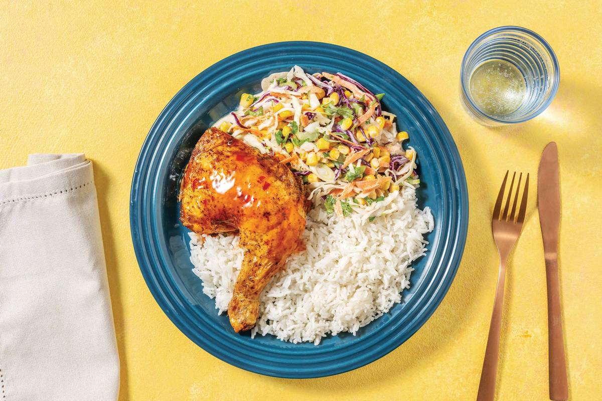 Sweet Chilli-Glazed Chicken with Butter Rice & Asian Corn Slaw