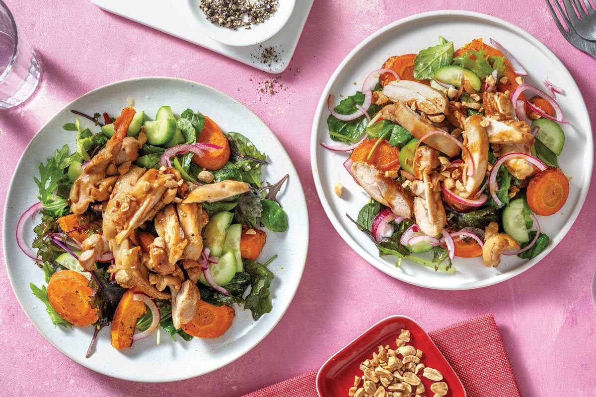 • Thinly slice radish. • Drain pickled onion, reserving a splash of the pickling liquid. • In a large bowl, combine mixed salad leaves, roasted veggies, pickled onion, the reserved pickling liquid and a drizzle of olive oil. Season to taste.