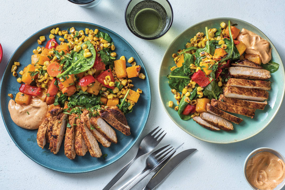 Bright, colourful and full of flavour - those are the makings of all the best meals, including this one! With Tex-Mex spiced pork, roasted veggies and smokey aioli to tie it all together, every bite of this delicious dinner will have you feeling happily satisfied.
