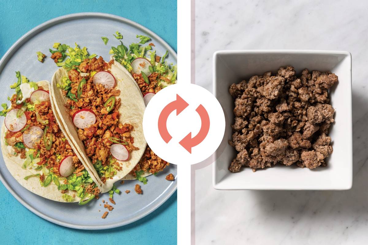• Thinly slice fresh chilli (if using) and radish. Spread a thin layer of aioli over tortillas. • Top with some cos lettuce and Vietnamese-style beef and veggies. • Sprinkle with crispy shallots, radish and chilli to serve. Enjoy! Little cooks: Take the lead and help build the tacos! Enjoy!
